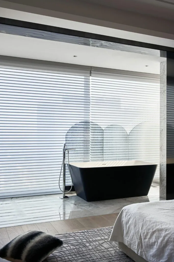 Diseño minimalista y funcional con tejidos de alta calidad para el control perfecto de la luz.